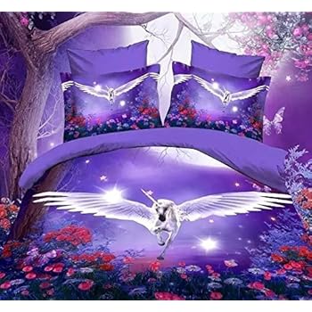 Amazon.com: White Unicorn Purple Skin 100% Cotton Queen Size 3d Print Bedding Set (1 Duvet Cover ...