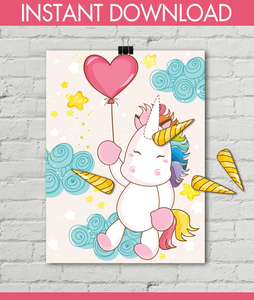 Unicorn Party - Pin the Horn Unicorn Game - 18x24 Magical Unicorn Party, Birthday Party, Rainbow ...