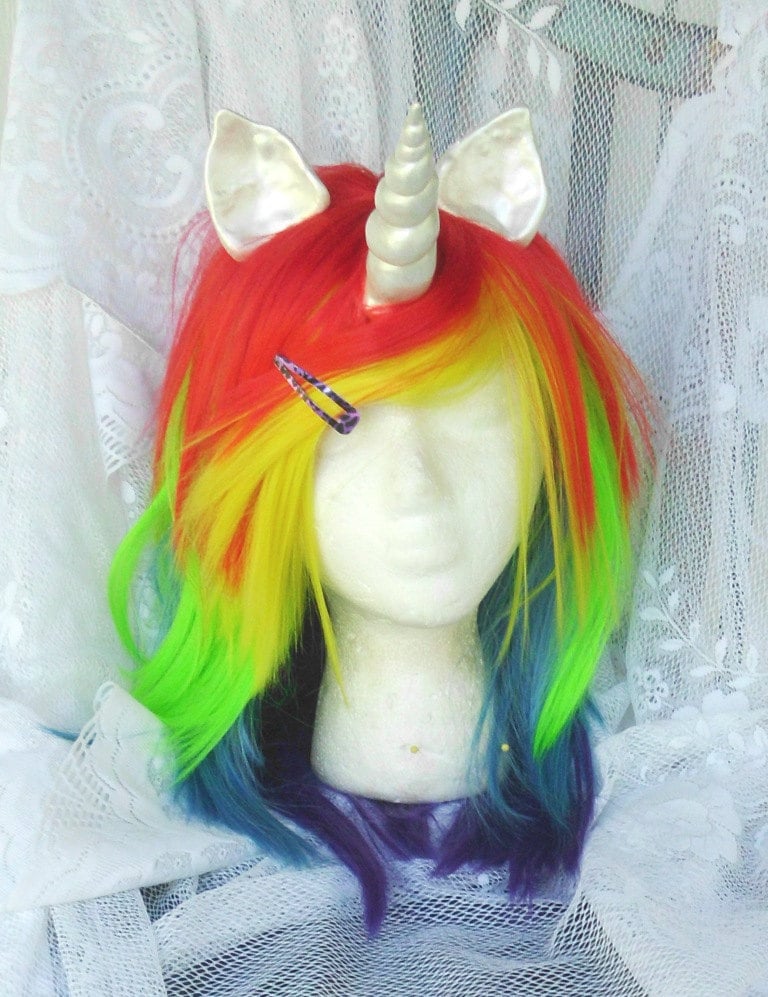 Long Rainbow Unicorn Cosplay Wig Halloween Costumes for kids girls women Christm. The unicorn rainbow wig is a unicorn costume accessory for carnival & theme party. Notify me when this product is available FUN - Glitter Ears and a soft unicorn horn make this a great headpiece.