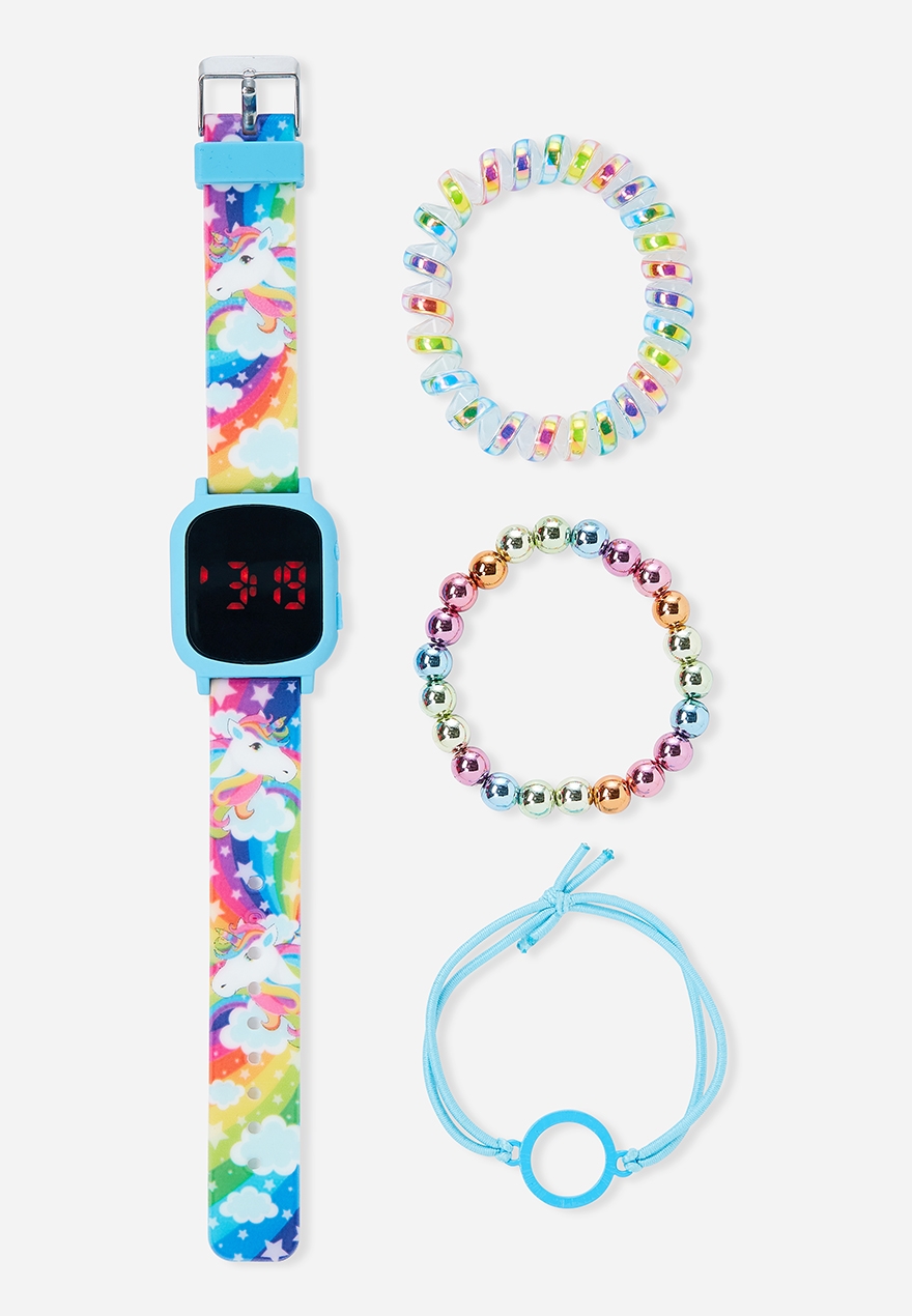 Rainbow Unicorn Girls LED Watch & Bracelet Set | Justice