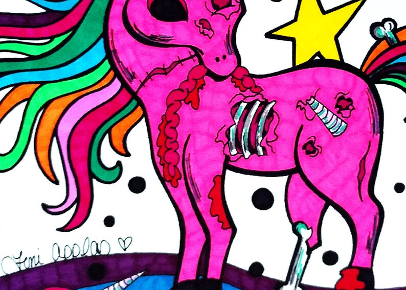 Colorful Zombie Unicorn Print Rainbow 8x10 Inch Print | Etsy