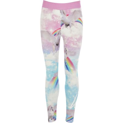 Girls Hype pink unicorn printed leggings | River Island