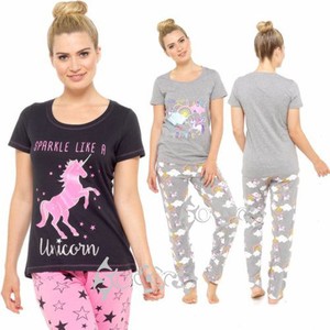 Ladies Unicorn Print Black Grey Cotton Short Sleeve Pyjamas Set Nightwear 8-22 | eBay